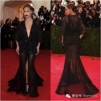 6. 女神Beyonce每次都是Met Gala迟迟到来的压轴嘉宾。这次这件黑色薄纱质感来自Givenchy高级定制礼服,拖地的后摆为整体增加女王感。