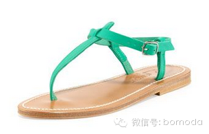 简单带式真皮夹趾凉鞋,清新薄荷绿增添俏皮感。