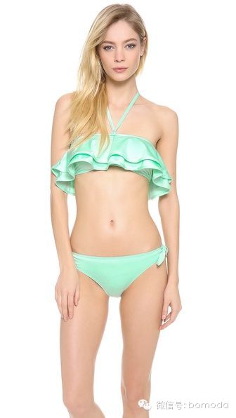 这款清新薄荷绿 Zinke 抹胸比基尼上衣包覆有荷叶边,设计时尚,还有独特“效果”哦。