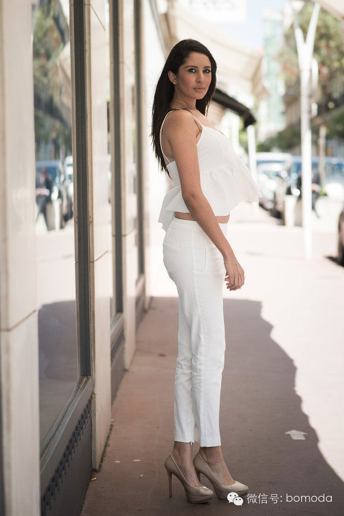 艳阳当道,必然要抛弃那些黑色沉闷的衣服,换上白色清爽的装束出门。像这样白色吊带上装搭配白色长裤,裸色高跟鞋让整体看起来就很清爽。