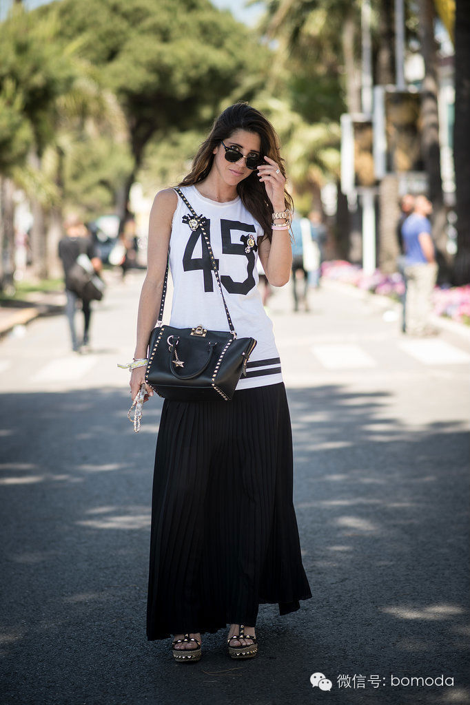 白色及踝长裙绝对是每个姑娘夏日衣橱必备款,一条裙子就能给你所有夏日需要的元素。只需要配上一条大项链就可以轻松出门啦。
