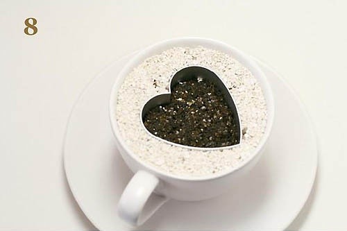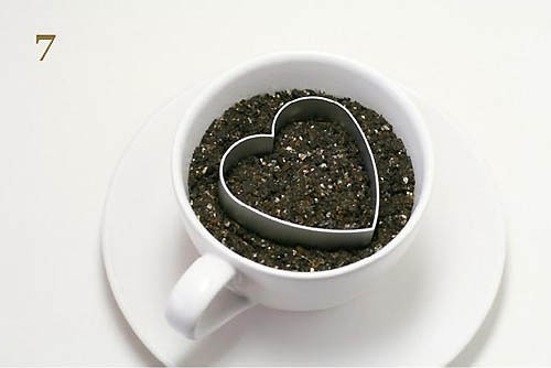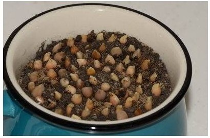 3.然后找个自己喜欢的器皿或杯子装上湿润的泥土,把种子全部摆好,小头朝上。