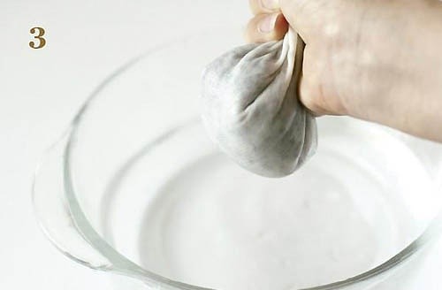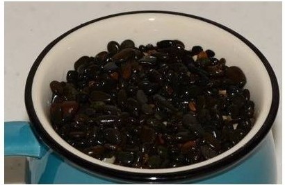 3.再将稀烂的果肉倒入短丝袜,继续搓揉几下,接著就泡水1天,不可泡水两天以上,否则会发芽,隔天再继续搓揉,可使果肉全部挤出,只剩黑色的种子,看起来有点像黑芝麻。