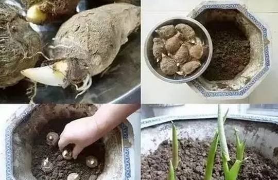 6.把细长的根埋入准备好的育苗土中,芽头朝上,奇迹就在慢慢孕育
