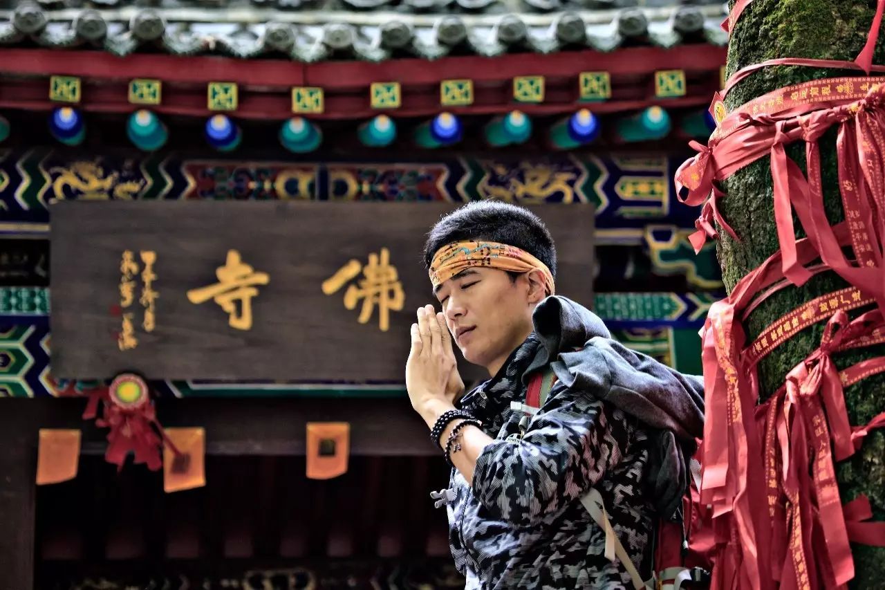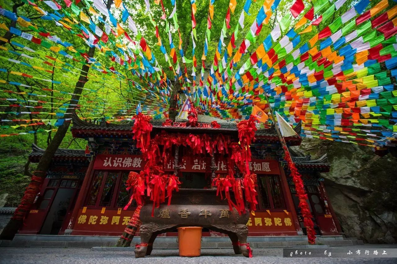 下山途中,遇见睡佛寺,寺里挂着经幡,摇曳着我的梵心。