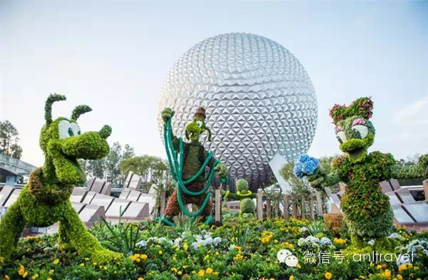 迪士尼未来世界主题公园一年一度的国际花卉园艺节将这座公园变成了植物的奇幻王国,处处都充满了奇思妙想的童趣。迪士尼中的每一位主人公都被塑造成了花卉雕塑和修剪的灌木。今年又新增了“冰雪奇缘”中的Anna和Elsa和崭新的高飞(Goofy),还有钢牙奇奇和大鼻帝帝(Chip 'n Dale)。此外,花卉节每周都会有迪士尼园艺家的活动,游客们可以学到很多园艺技巧,还能得到实践的机会。