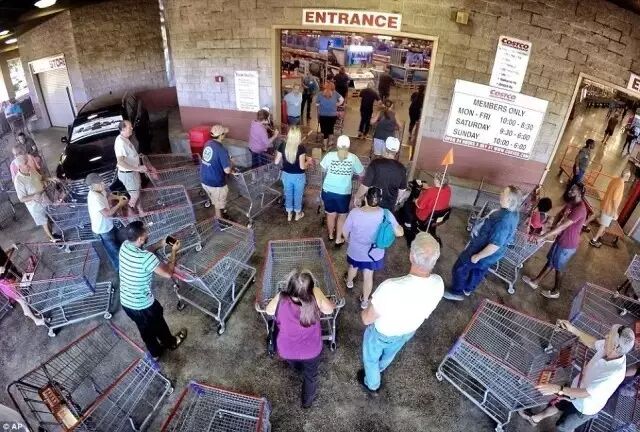 在飓风来袭前,整个东岸地区的民众蜂拥赶出超市,大量囤积生活用品,货架都被扫荡一空。