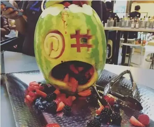 ▲ 恶搞水果拼盘:呕吐的西瓜,上面刻了Pinterest的logo