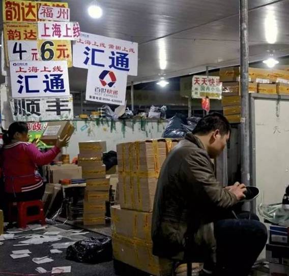 在快递摊位前的牌子上,大都写着上海上线、香港上线、深圳上线甚至纽约上线的字样,“哪里上线的意思就是指从哪里发货,你要是想把发货地改成上海,那就是上海上线。”一位摊主不以为然的说。