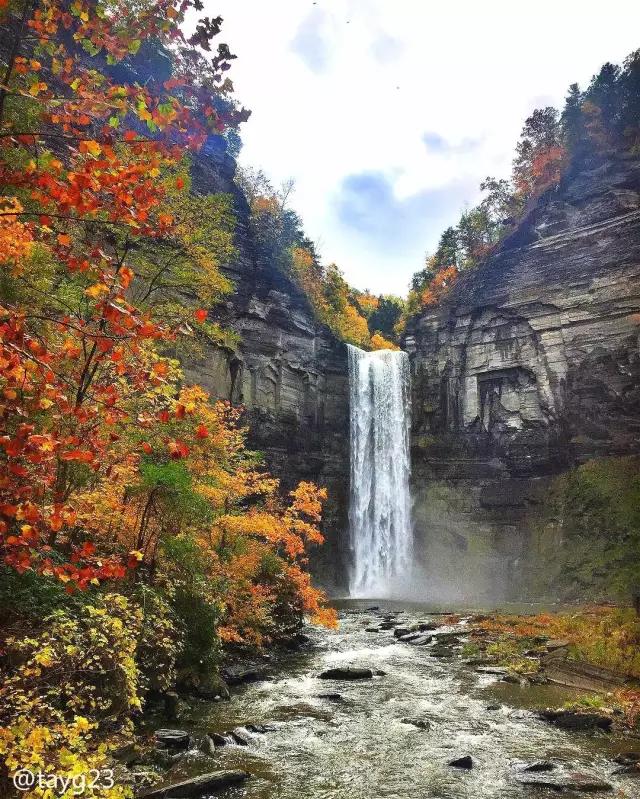 初秋的尼亚加拉瀑布城,漫山遍野的枫叶自带滤镜,此刻随手一拍都是明信片。建议从尼亚拉加瀑布城出发,一路向东,就能抵达Taughannock