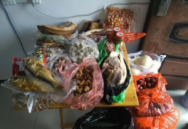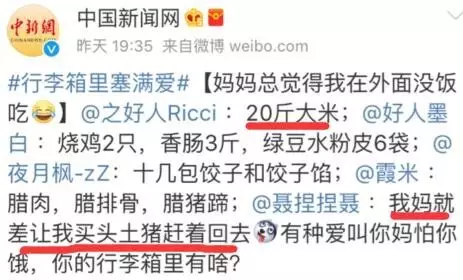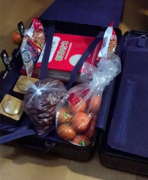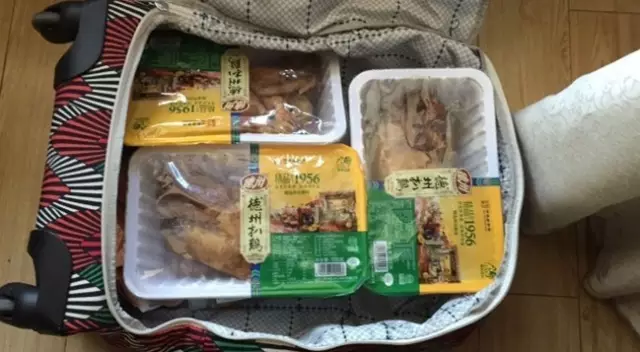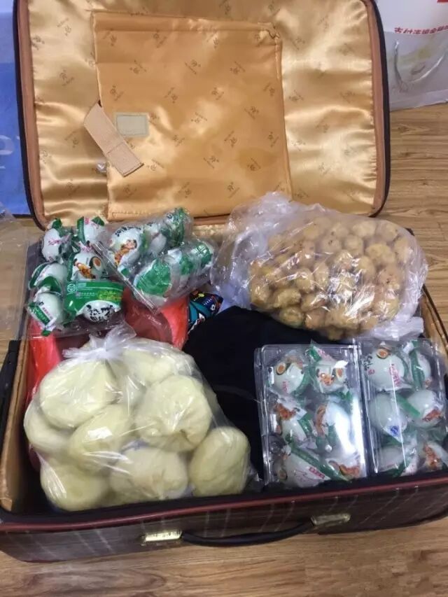 表哥的行李箱被塞得满满当当,他奶奶便找来一个大包袱,咸鸡蛋、肉丸子、藕夹···能想到的家里的好东西,都恨不得给大孙子装上:这里还有两箱牛奶,你给孩子拿着。
