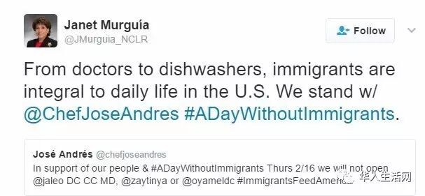 Murguia)在推特发文表示:「从医生到洗碗工,美国移民是我们日常生活中不可或缺的一分子。」
