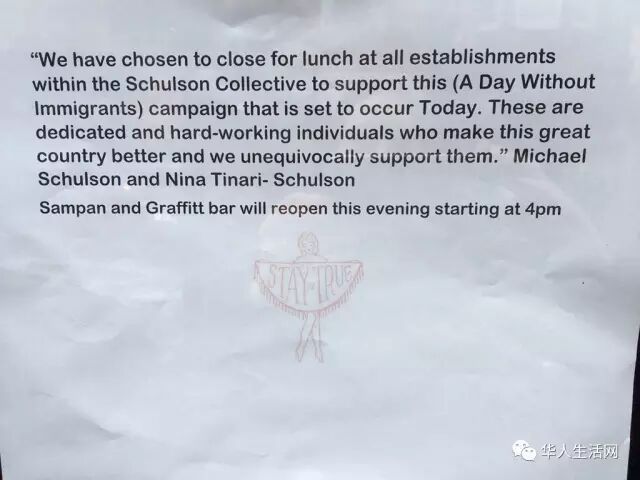 Today)报导,费城、华盛顿、波士顿、休士顿、芝加哥和纽约等城市都在举行「无移民日」抗议活动,从昨天开始就在社群网站和大家奔相走告宣传之下发酵,这场抗议声势也越来越大。