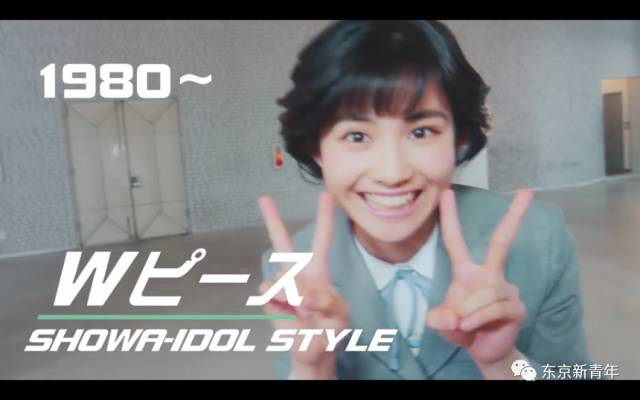 1980年,是小泉今日子的时代,她经常以Kyon Kyon的造型出现在当时的流行杂志中,而摆的都是这个W剪刀手的POSE。
