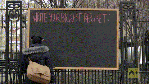 之后,越来越多的人开始走到小黑板面前,拿起粉笔,写下了自己的遗憾。