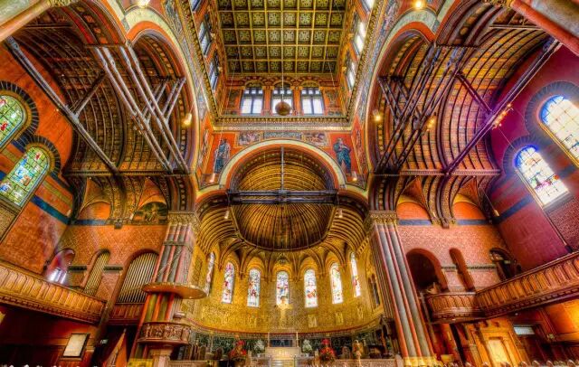 三一教堂位于波士顿公共图书馆美威大楼的前方,奠基於一七三三年,是一座典雅的哥德復古式的教堂。一八七七年予以重建,是仿十一世纪法国中部岛奥凡尼的「法国罗马式」建筑而成,设计非常精致,是美国教堂建筑中的代表作。