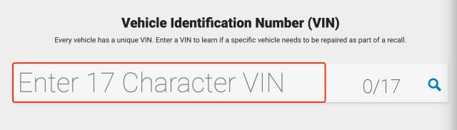 2、进入NHTSA网站。在首页最上面点击Recall,将VIN字符输入搜索条。如果您的车辆在召回之列,网站会告诉你该网站会告诉您。