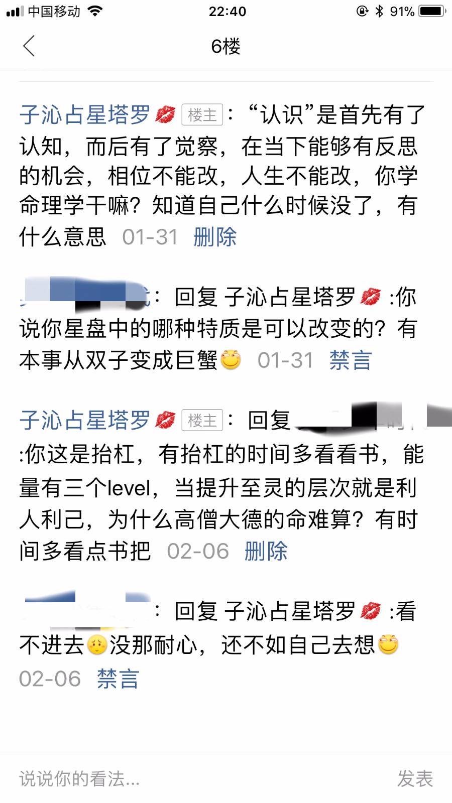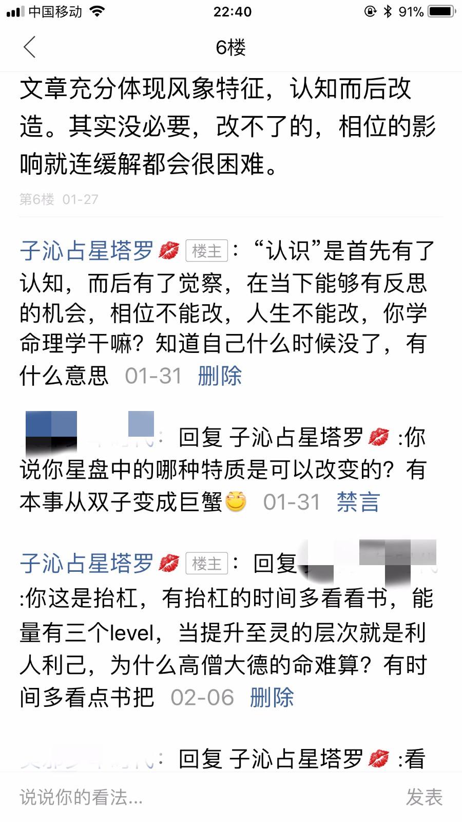 我有个客户,特别让我脑袋疼,有金、土、火、冥的T-square,一共做过几次个案,每次在我觉得Ta改变很大的时候,Ta就在网上看一堆杂七杂八的东西,如果Ta原来的问题是100分的话,我觉得已经调整到了40分,然后在网上随便看一圈,就马上变成300分,还不如不去做,还不如不去了解占星,哪怕是了解占星的知识,也买书看啊,论坛上的那种基本上都是没缴过学费,身边都没有专业的占星师可以讨论在网上意淫。