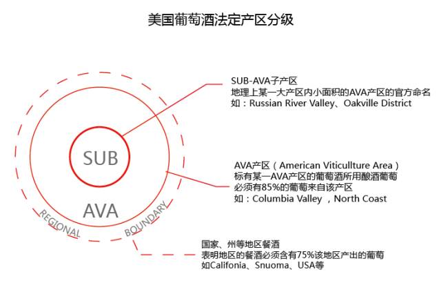 1980年,美国葡萄酒AVA制度开始实施,AVA产区就是(AmericanViticultural Area)美国葡萄原产地制度 。是美国官方制定和管理的葡萄酒产区制度。一般一个 AVA 产区要求是一块具有明显可辨识性的统一地理特征的地区,主要根据气候、土质等地理特征来划分全国的葡萄与葡萄酒产区。
