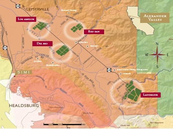 1982年,思美购买了亚历山大谷的山脊葡萄园(Landslide Vineyard),山脊葡萄园源于数百万年的地质变动,名字来源于俄罗斯河(Russian River)的一次较大规模的地质运动转变过程中形成的一个坡,这条河穿过陆地,形成了很多的沉积土、石头、黏土和亚黏土,形成了山脊葡萄园独特的土壤混合物。