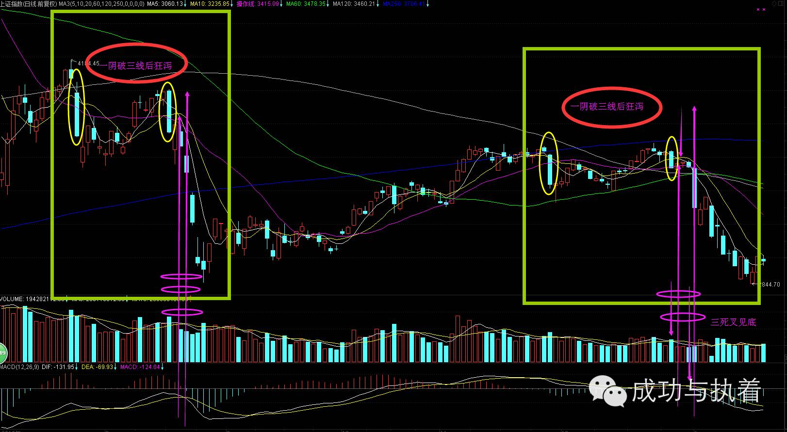 另,“一阴破三线”是出局信号,“三死叉见顶”是最后清仓日。先看日线的几次“一阴破三线”。https://mmbiz.qlogo.cn/mmbiz/vohBicibS0sK5tY3XBjcOibPntoA3YxI4a7kj9yLCAicdI1P3YVlXy2z8rnOBgcmEJpj3WCM8Oq0SVWxe8KOAaXbcA/0?wx_fmt=png