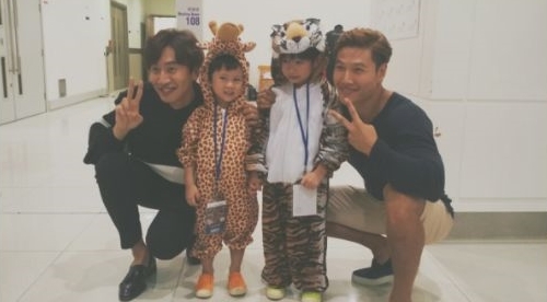 被公开的照片中,李光洙和金钟国与穿着老虎和长颈鹿衣服的萌孩子在一起,两人笑容满面,场面十分温馨可爱。