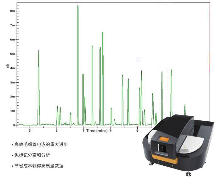传统CE系统的数据质量往往很差。即使是相同的样本,数据的重复性也很难达到要求。灵敏度被认为是不够的,除非使用昂贵的、费时的标记技术,这些技术会对分析物的性质产生不利的影响。HPCE512作为一种免标记系统,既可以减少分析成本,又可以解决常规CE的问题。