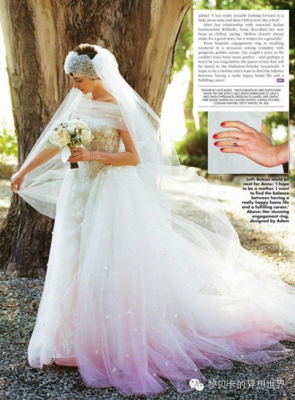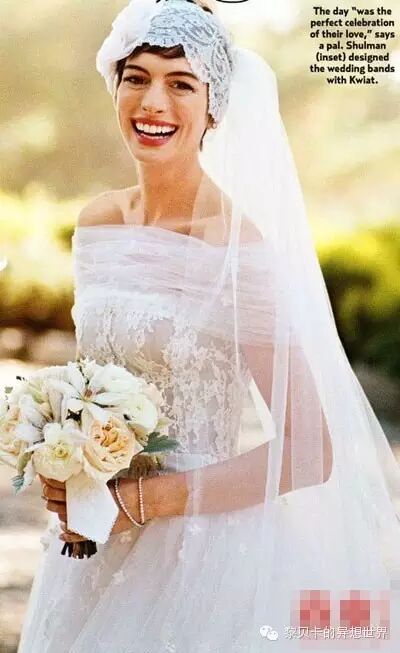 安妮·海瑟薇的婚礼在英国偏僻的乡间举行,但是婚纱一点不含糊,是Valentino专门设计的,美得欲仙欲死。↓↓↓