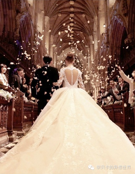不久前周杰伦的婚礼,在古堡里举行,昆凌的婚纱虽然夸张,但也很配合古堡的气氛。↓↓↓