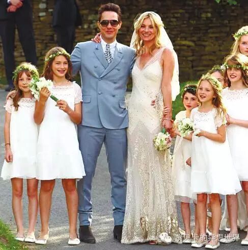我最爱的凯特·莫斯,2011年结婚时,关于她会穿哪家的婚纱被媒体狠狠炒作了一轮-没办法,她随便打个哈欠都要上头条,更何况结婚。后来她这条裙子出自和她长期合作的设计师John Galliano之手。她一向穿得很摩登有型,但这款婚纱设计复古优雅,裙摆的形状很好看,细节考究。看起来不夸张,但绝对经得起细看。↓↓↓