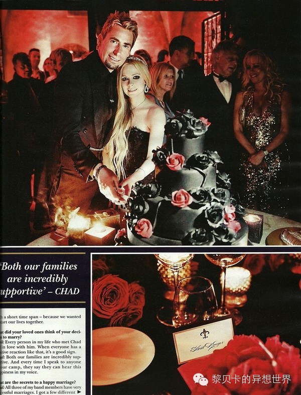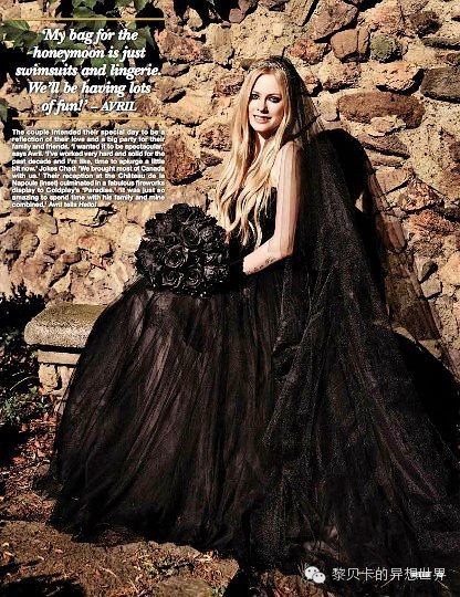 黑色控艾薇儿,黑色婚纱,黑色捧花,连蛋糕都是黑的也是醉了,就像宣告:我就是要任性到底。成功抢尽风头。↓↓↓