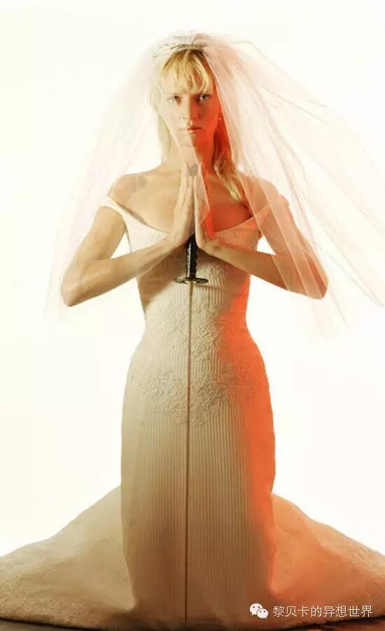 《杀死比尔》里乌玛·瑟曼的新娘妆造型据说是她自己的主意,这部电影也是昆汀送给她的30岁礼物↓↓↓