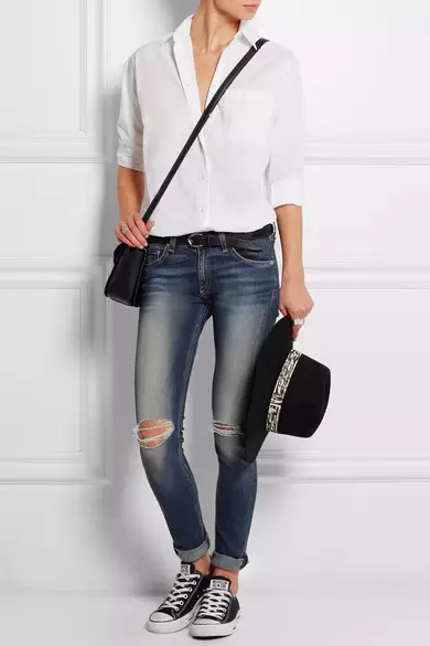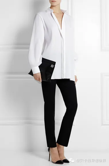 白衬衣是万年经典款,什么时候也不会过时。它不仅百搭,还适用于任何风格任何场合,出得职场入得礼堂,出得了街入进得卧房……不知道穿什么的时候,选它总是没错的。所以黎贝卡敢说,它绝对是衣柜里最值得投资的单品。