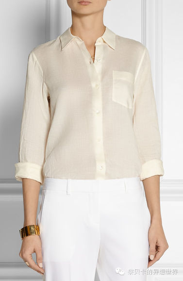 还有这种白色真丝双绉衬衫,配有尖领和利落的纽扣袖口,属于基本款。↓↓↓
