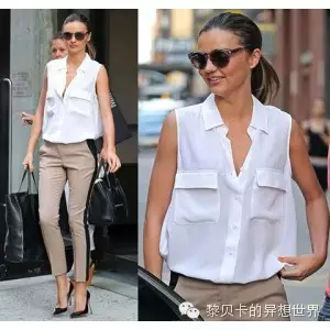 可儿也经常穿它家的白衬衣。这件双袋无袖白衬衣的出镜率很高。↓↓↓