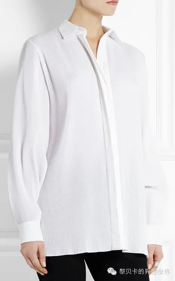 比如这款现代版白衬衫配有利落的压痕褶和大廓形剪裁。既适合打造办公室造型,也可以配上牛仔裤作周末休闲装扮。↓↓↓