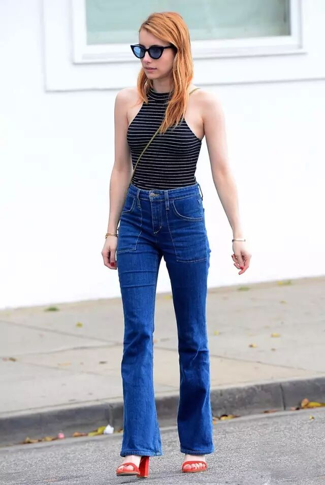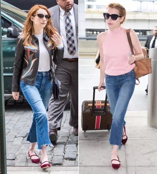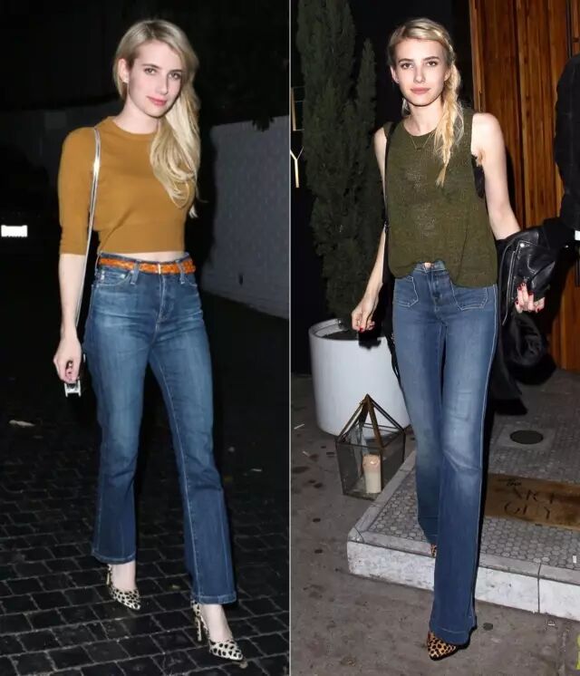 艾玛最近很爱穿我们很久以前介绍过、现在果然火的一塌糊涂的短一截喇叭裤。