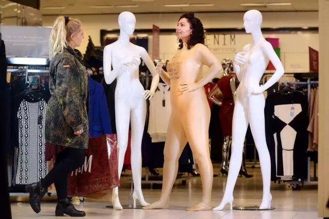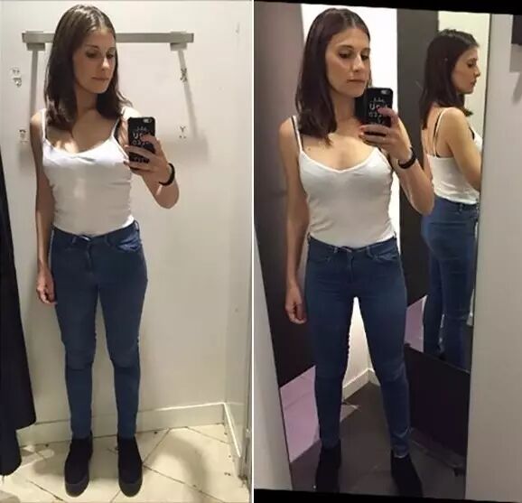 今年又有一位27岁的女生Alba Carreres,在西班牙做了类似的事情,她花了四个小时去了巴塞罗那市中心的12家店。作为参考,先在自家镜前拍一个~看得出,她胸有点大腰还有点粗整体还有点小壮实。▼