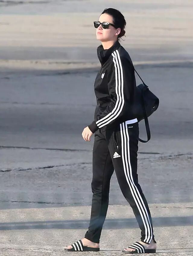水果姐Katy Perry就穿着这双拖鞋迎接自己的30岁生日,还配了全套同款运动装。▼
