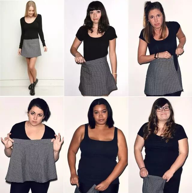 有五个不同身材的女生做了一项实验,她们试穿Brandy Melville家几件同样的均码衣服,结果发现所谓的均码,呵呵,全都是骗人的~▼