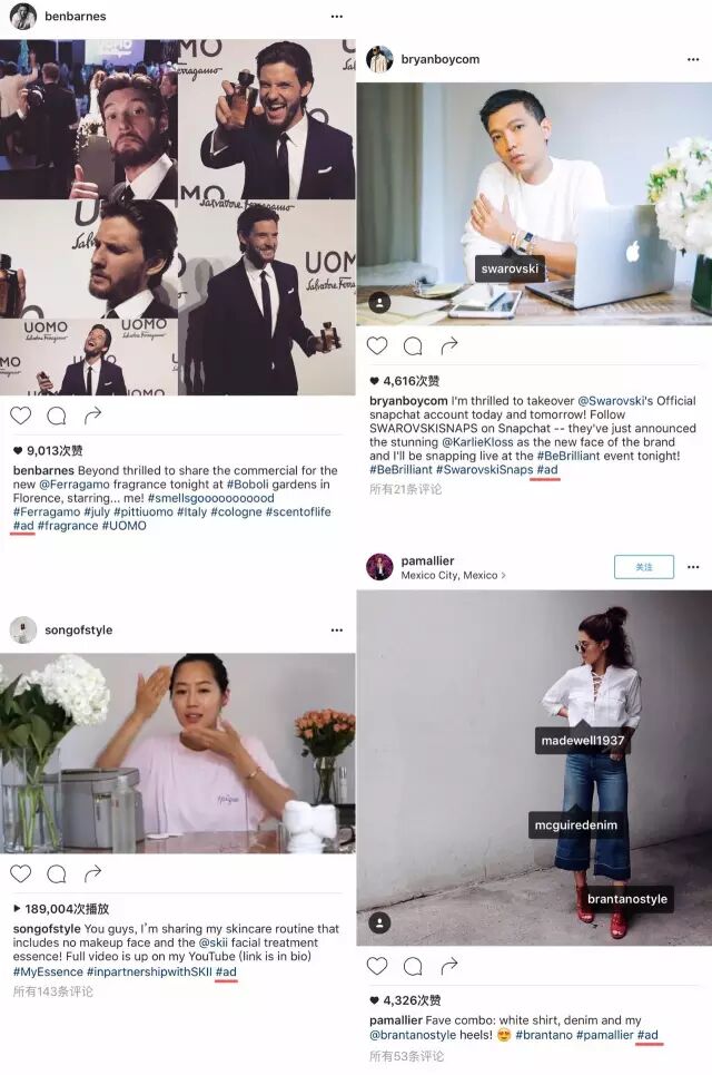 我也认真地去翻了一下别的博主和明星的Ins,确实有不少明星和博主都已经开始加标签#ad了,按照法规为了不欺骗消费者,必须要标注广告才可以。我很自觉,二条广告一直以来都注明了是推广(骄傲脸)▼