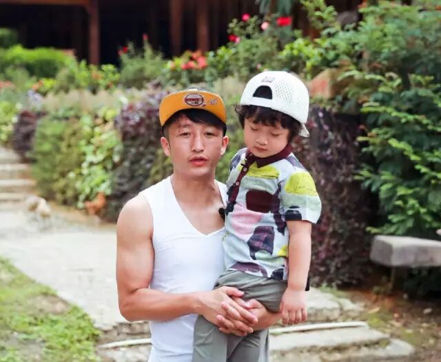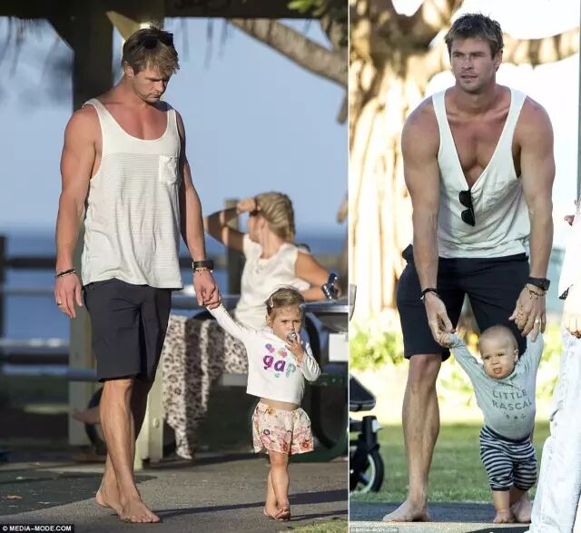 奶爸雷神穿着老头背心遛娃的模样,又暖又养眼~▼