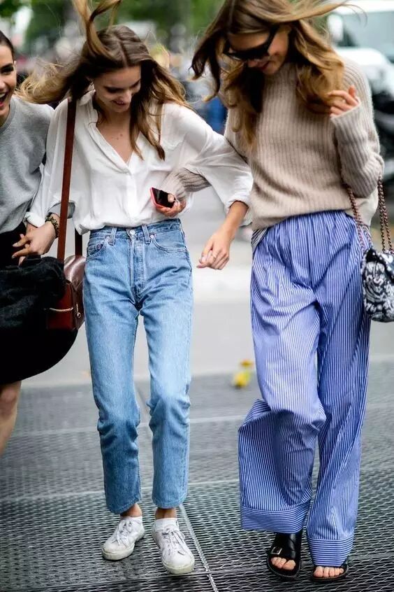 这两年流行复古风和舒适风,宽松的中腰牛仔裤越来越受欢迎。▼