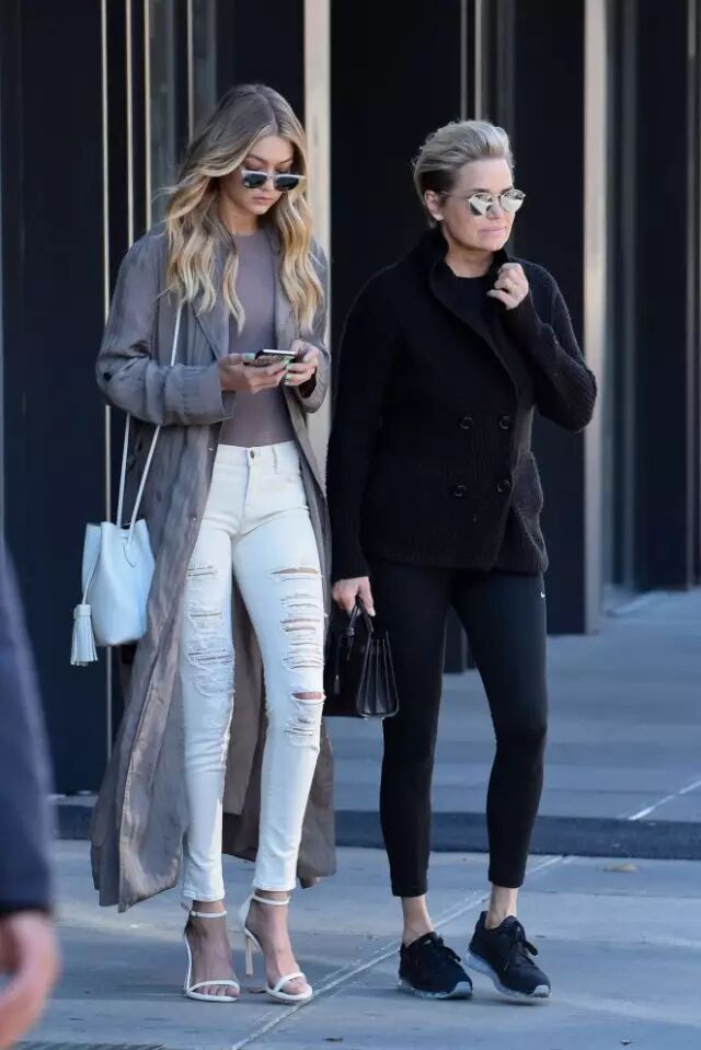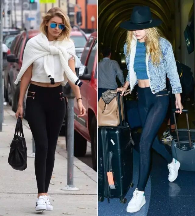 平时不去健身也可以穿。左图为Gigi出门和朋友去吃午饭,右图为Gigi在机场。▼