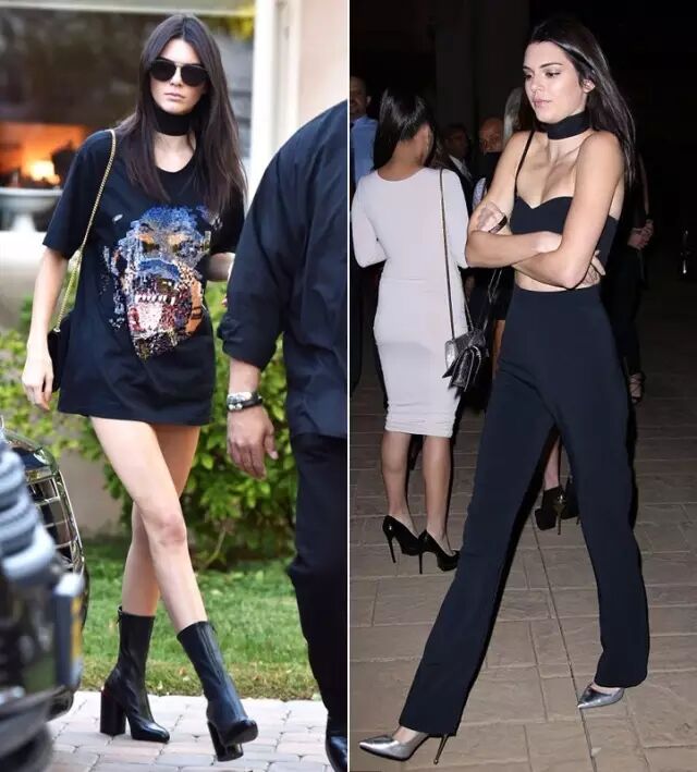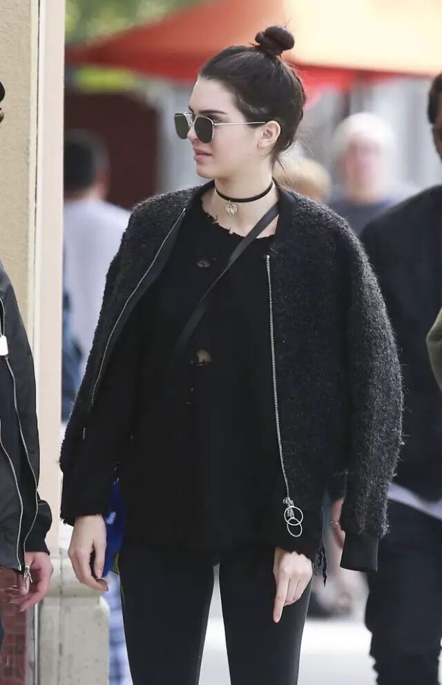 粗一点的黑色Choker会更适合脖子修长的人戴,肯豆戴得比较多。▼