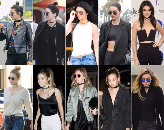 这两年席卷时尚圈的Choker风潮,她俩也做出了很大的贡献。金小妹和Gigi共同的造型师Monica Rose就是最早复兴这股潮流的人之一。▼