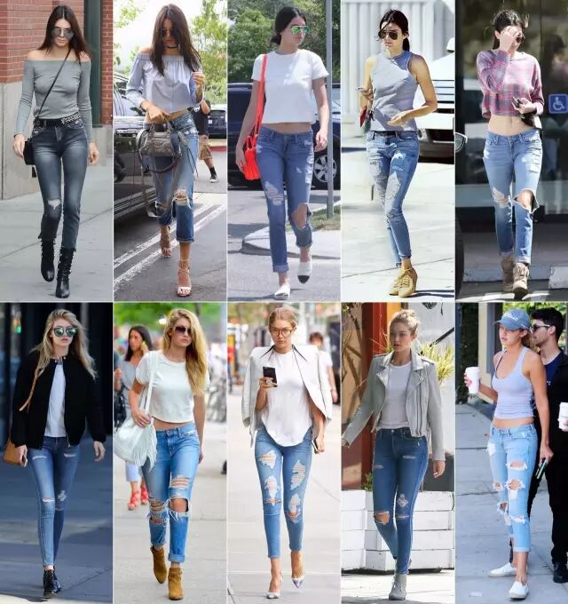 普通的紧身牛仔裤看起来更干练,而破洞牛仔裤则能更好地展现网红们随性叛逆的一面。▼