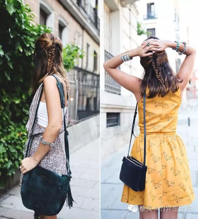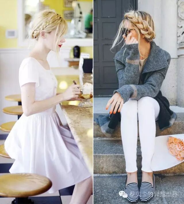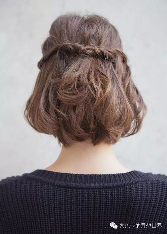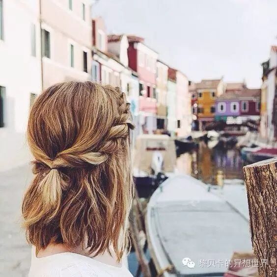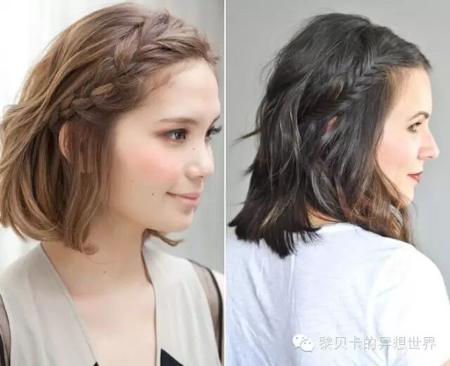 半长不短的头发可能因为长度不够,没办法编出完整的麻花辫。但这种法式编发(French Braids)就很适合,充满了浪漫风情。▼