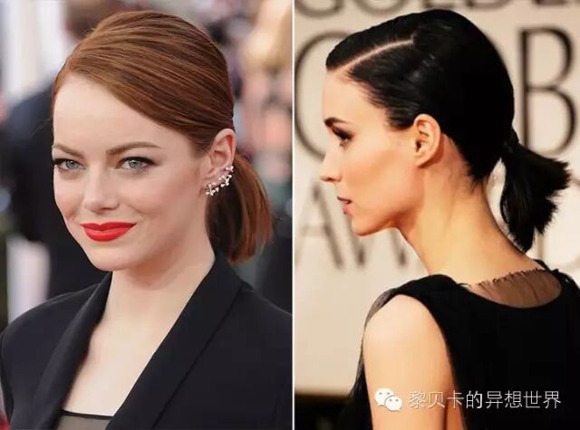 注意马尾要扎低一点,头发要更贴一点,看起来会更优雅。石头姐和鲁妮·玛拉,都很贴~▼