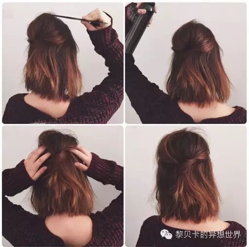 盘完之后记得用梳尾或者手指插进头顶的头发,让它变蓬松,可以喷一点点发胶定型。▼